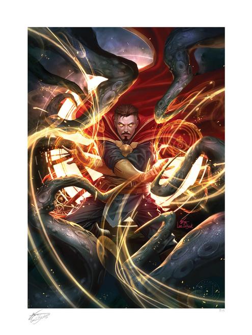 Sideshow Art Print Doctor Strange By InHyuk Lee With Frame Each Doctor Strange Fine Art Print features an authorized, automated signature and an embossed Seal of Authenticity as part of the limited edition of 150 pieces. Print details: * Officially licensed by Marvel * Limited edition of 150 * 18 x 24” fine art giclée print, image dimensions 14 x 20” * 100% cotton rag, acid free, certified archival matte Epson Cold Press Natural, 305GSM * Epson archival inks * Autopen artist signature. Note: Signatures shown in photos are approximations and may differ from the actual product in shape, size, positioning, and ink color. * Embossed seal of authenticity * Including Frame: 65×79 cm * .